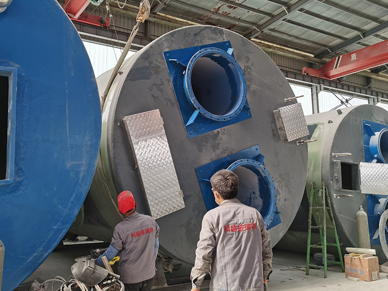 潍坊科盛玻璃钢有限公司主要生产经营四大系列20多种产品,机制玻璃钢年生产能力达万吨。主要产品有:玻璃钢泵站,一体化玻璃钢泵站,玻璃钢罐,玻璃钢储罐防腐,玻璃钢化粪池,玻璃钢冷却塔,玻璃钢凉水塔,玻璃钢脱硫塔,玻璃钢(夹砂)管道及管件、玻璃钢顶管,玻璃钢电缆保护套管;玻璃钢保温管道;电厂烟塔合一工程,玻璃钢烟道;瓦斯抽放玻璃钢管道;各种立式、卧式、现场缠绕成型容器及其它非标玻璃钢容器系列产品。